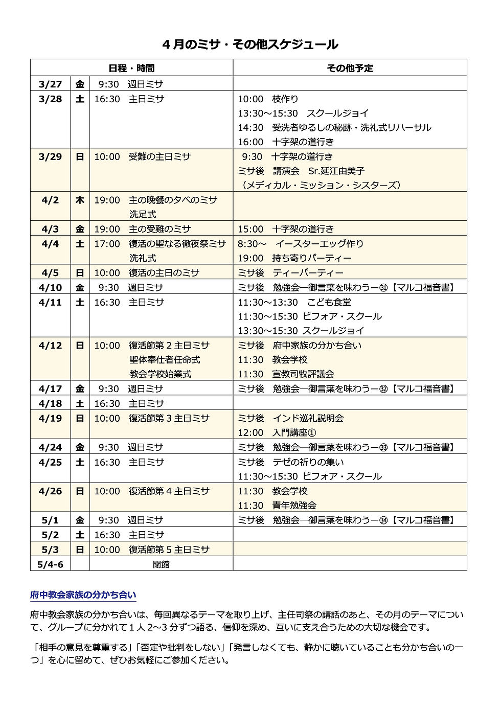 Opening hours of Fuchu Catholic Church will change starting May 2025.
